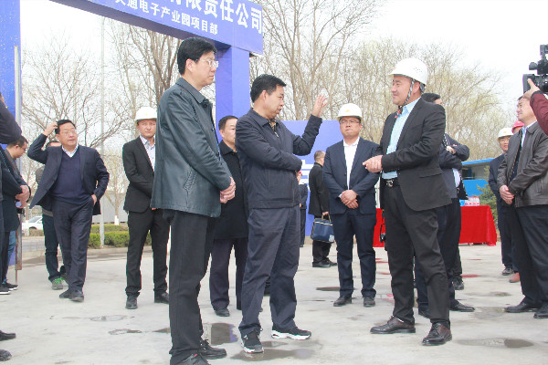2019年3月27日下午,平?jīng)鍪形睍?、市長(zhǎng)王奮彥、市委常委、崆峒區(qū)委書記陳鐸、市政府秘書長(zhǎng)薛曉宏等市委領(lǐng)導(dǎo)及平?jīng)鍪泄I(yè)園區(qū)管委會(huì)主任馬春寧等園區(qū)主要領(lǐng)導(dǎo)一行人蒞臨甘肅振興·天通電子(物流)產(chǎn)業(yè)園項(xiàng)目施工現(xiàn)場(chǎng)指導(dǎo)工作。